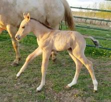 Produce: 2014 - Eeaa - MJK Cool N Classi - Black Stallion sired by MJK Vanzi King Glo 2015 - EeAt/aCHch - MJK Ms Cool N Classi - Sable Champagne Mare sired by MJK Vanzi King Glo 2016 - eeAACRcr - MJK Ima Cool Honey - Palomino Mare sired by Ima Cool Mr Kid 2017 - EEA/AtCHchCRcr - MJK Jamaican Me Cool - Homozygous Black, Amber Cream Champagne Filly sired by MJK Jamaican Me King 2018 - EeaaDd - MJK Truly Cool Twist - Grulla Stallion sired by Blue Isle Blackburn 2019 - eeAaDd W20 - MJK Cool N Chrome - Red Dun Stallion sired by Chromed Out Creation 2020 - eeAADd W20 - MJK Xtra Cool Chrome - Red Dun Stallion sired by Chromed Out Creation
