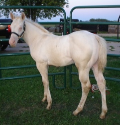 Dreamer is correct and well-built with a disposition like no other. He is handled daily and is trained to lead, tie, load, bathe, & pick up all four feet. Rarely do you find a colt with looks, personality, a solid pedigree, AND triple homozygous plus dun genetics like this one. He is willing to please and athletic; Shows a lot of class and will be a stand out in the ring not only for his color, but for his abilities as well. He is one very special colt and will make an excellent stallion prospect!
